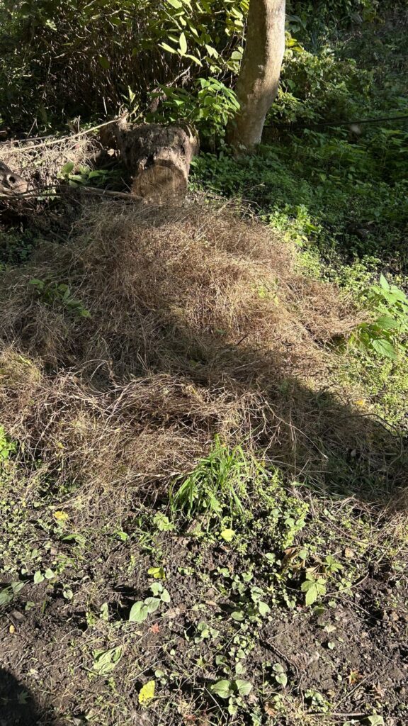 落ち葉の掃き掃除と、草むしりをしてきましたよ。