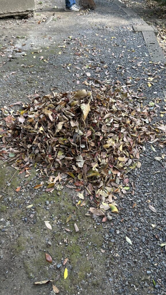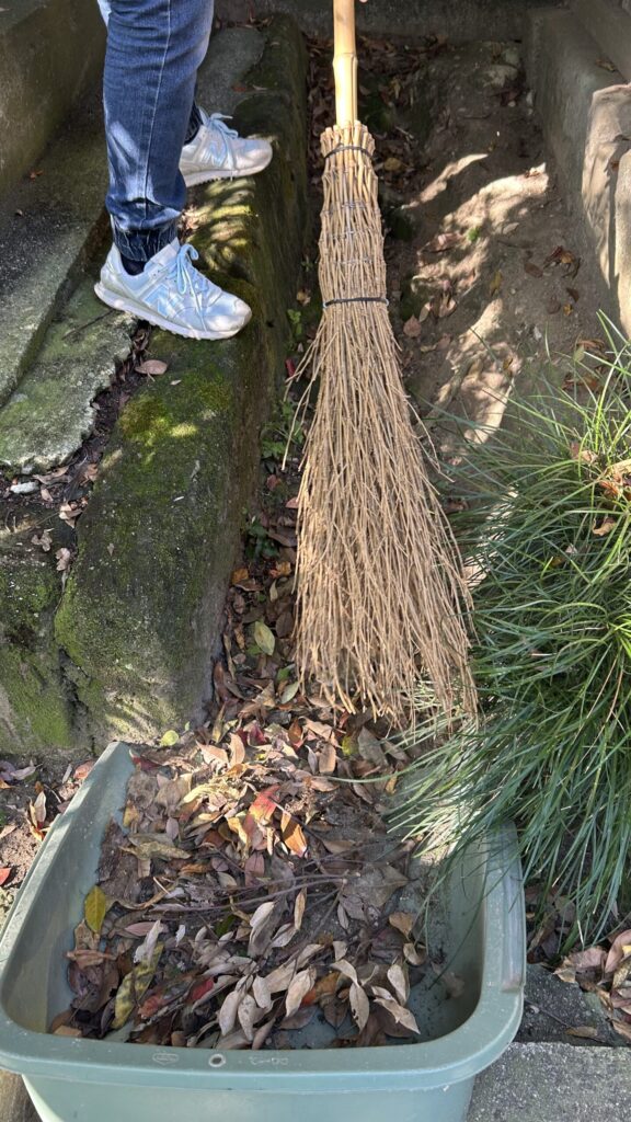 落ち葉を掃いてる最中に