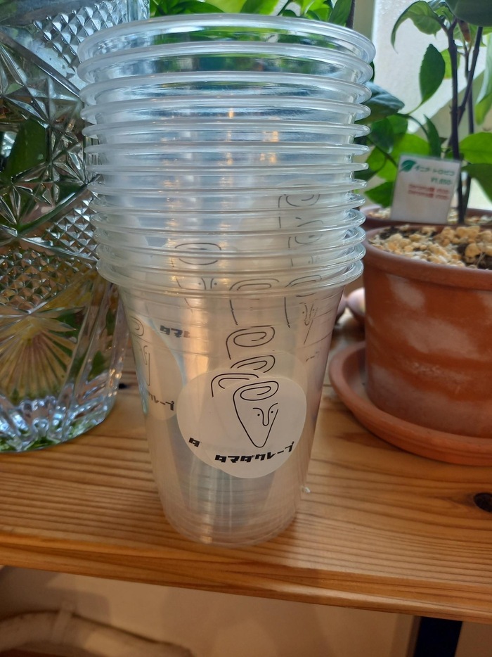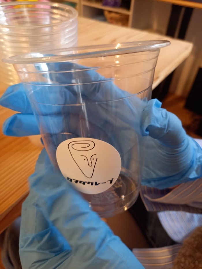 続いてドリンクアイス用のカップにもシールを貼ります😤