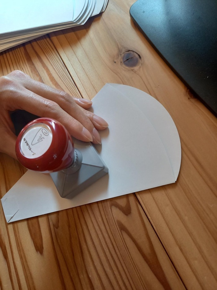 まずはクレープを入れるスリーブにスタンプを押します😀